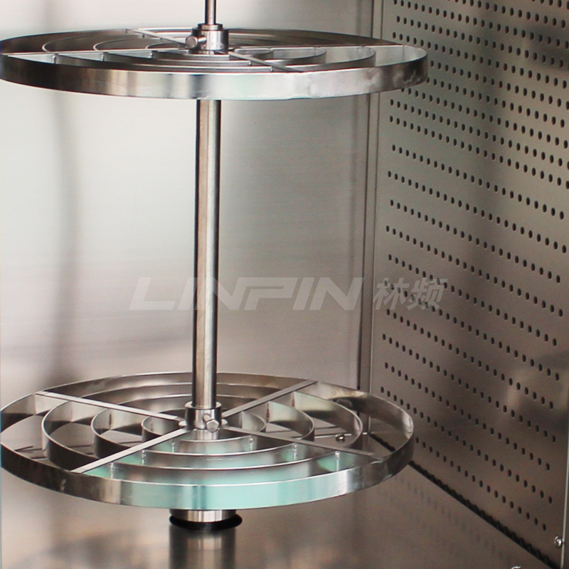 • 試樣轉(zhuǎn)盤:兩層不銹鋼轉(zhuǎn)架(可根據(jù)客戶要求定制隔板樣品架)